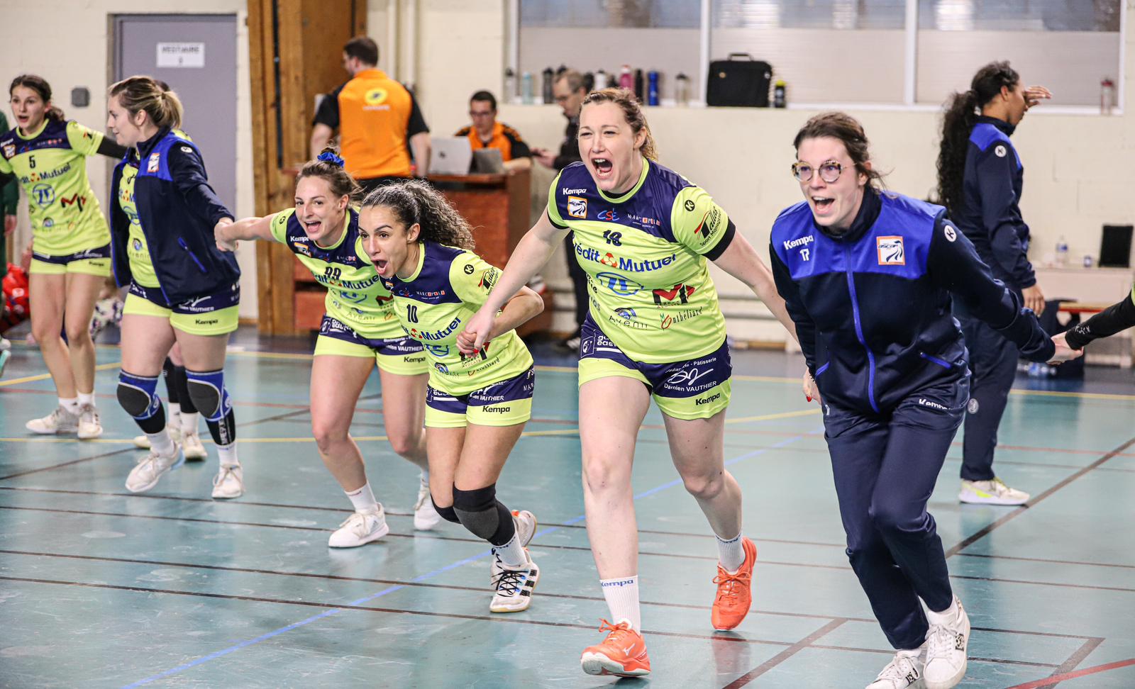 À la reprise en seconde période, nos filles ont connu quelques difficultés offensives, mais aussi défensives avec quelques fautes qui ont coûté des deux minutes, laissant ainsi l’adversaire en supériorité numérique sur le terrain. Ainsi, et après quelques minutes de jeu, nos filles ont connu un passage à vide laissant l’adversaire prendre un envol au tableau d’affichage (16 à 13, 42e minute). À moins de dix minutes de la fin de cette rencontre, nos joueuses étaient menées par trois buts (20 à 17). Toutefois, et sans rien lâché, nos Nationale 2 Féminine ont repris l’avantage en moins de cinq minutes, grâce à de magnifiques phases défensives donnant ainsi des opportunités offensives ! (20 à 21, 55e minute). Les cinq dernières minutes seront sous tensions, mais nos filles auront su garder leur sang-froid et s’imposer dans une magnifique rencontre ! Une victoire méritée qui délivre nos filles, félicitations à vous !